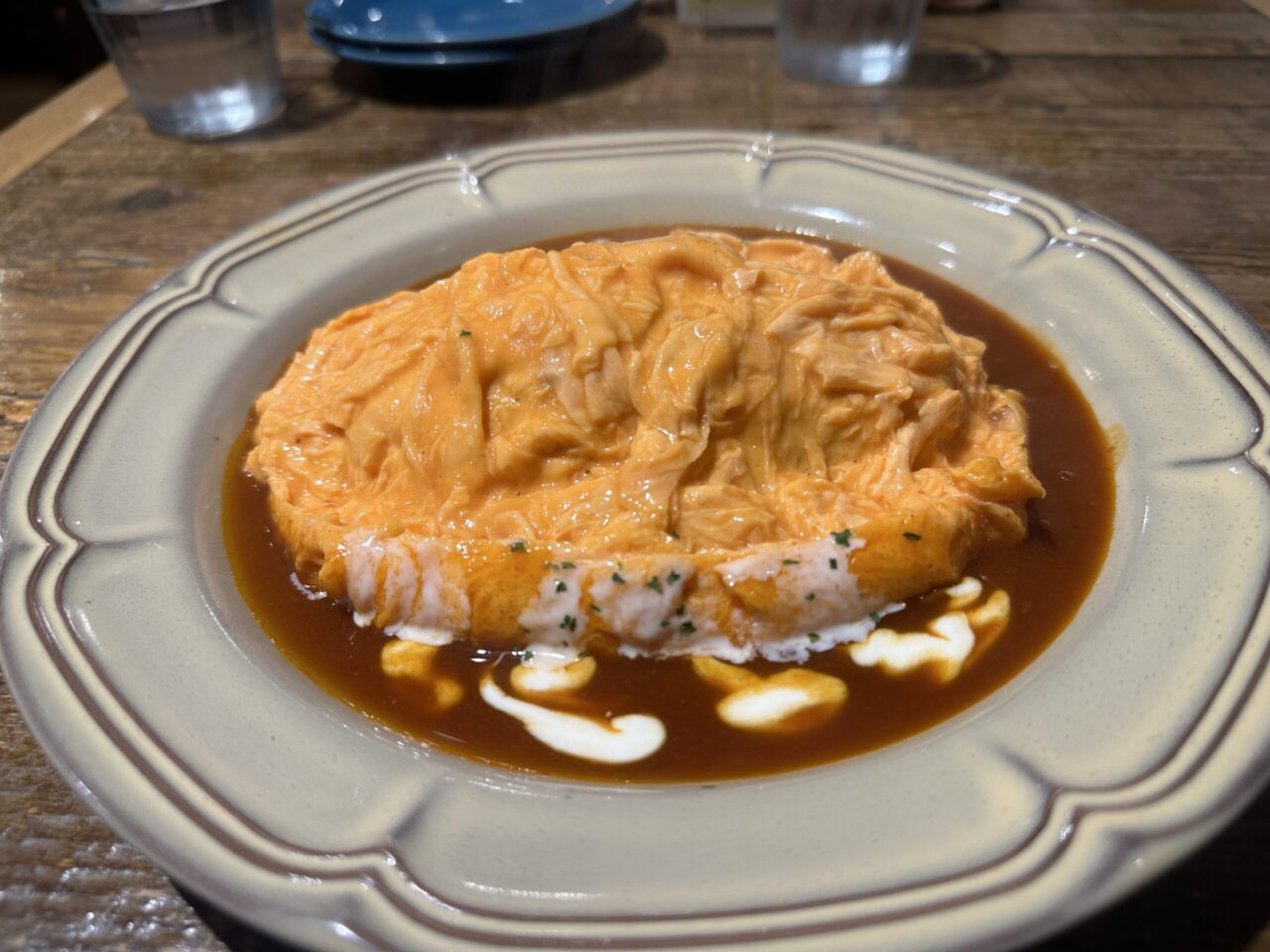 オムライスは、ケチャップで味付けしたチキンライスをふわふわの卵で包んだ洋風の日本料理です。20世紀初頭に日本で生まれた洋食文化の一環として発展し、現在では子供から大人まで幅広い世代に愛されています。オムライスの特徴は、トロトロの半熟卵と、ケチャップの甘みが効いたチキンライスの絶妙なバランスにあります。